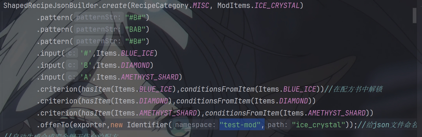 原来在下面的offerTo方法里的Identifier有俩构造方法,一个是没指定namespace,那生成的json文件中的recipe和recipes就是默认minecraft,所以指定namespace就是行了,namespace就是mod_id