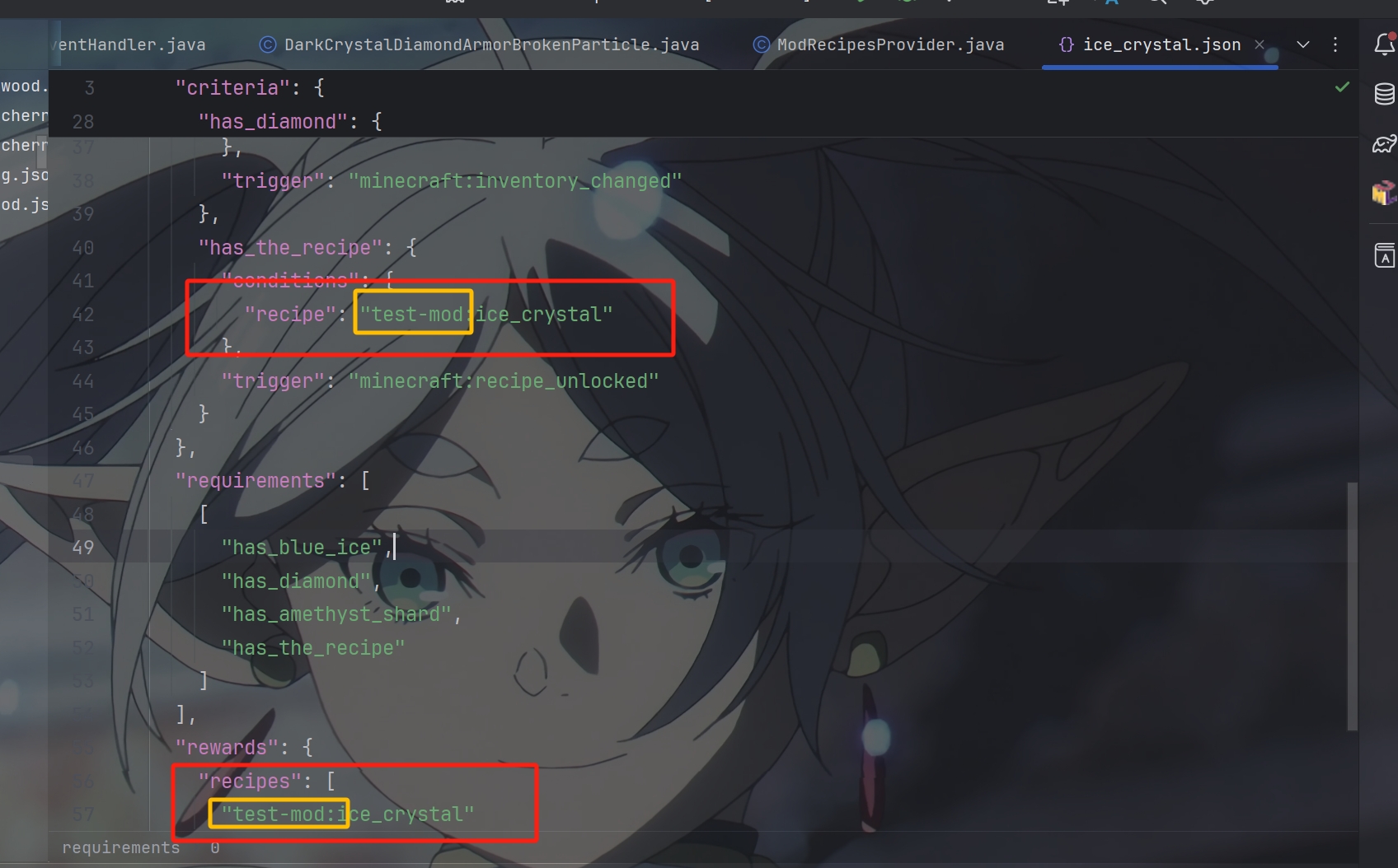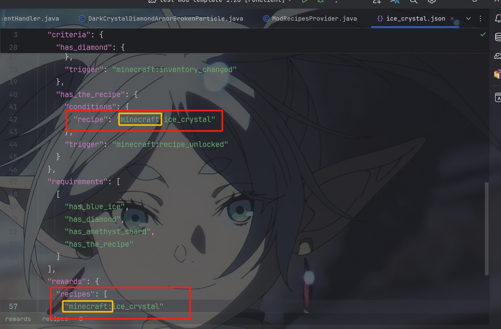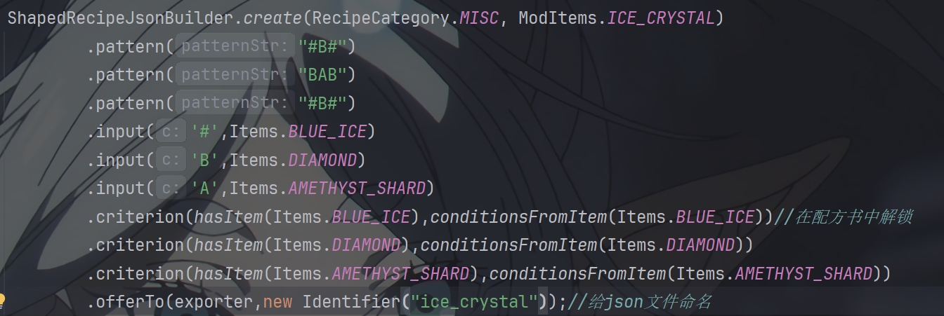 这样写导致数据生成的时候json文件中的recipe和recipes中的id显示是minecraft