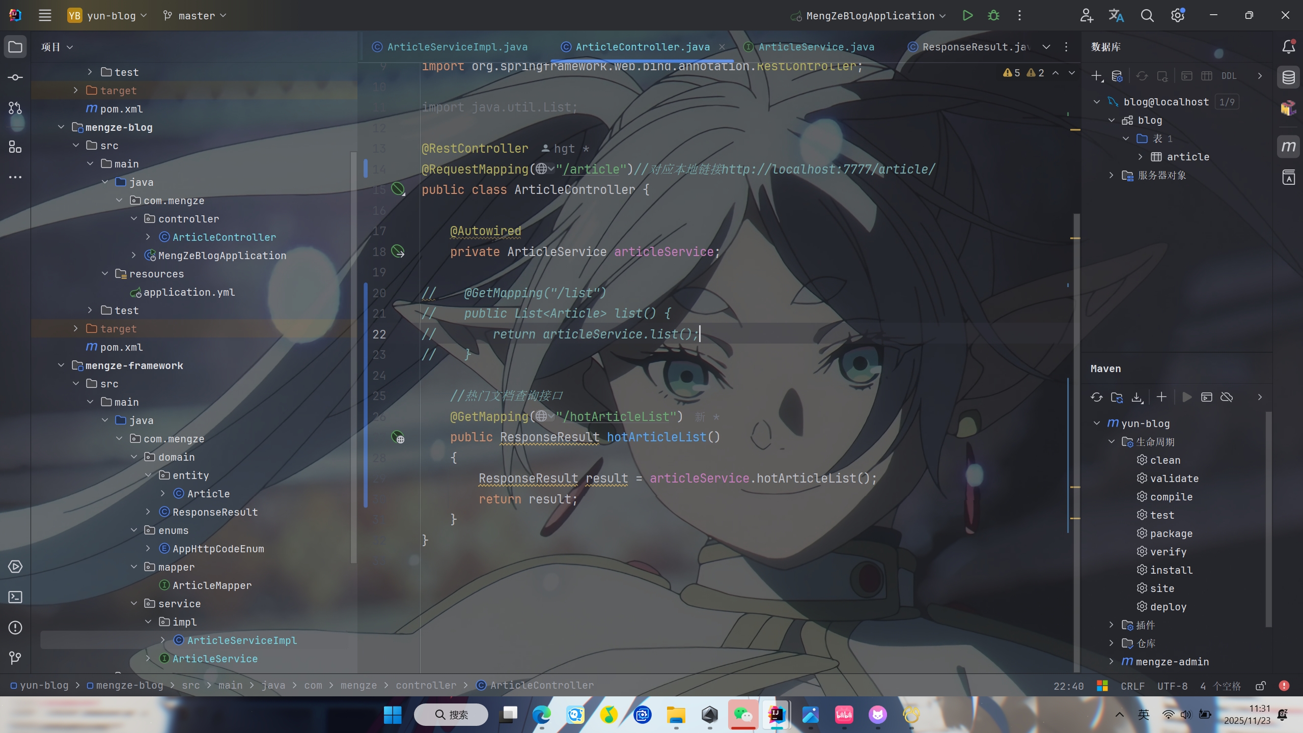 通过http://localhost:7777/article/hotArticleList接口调试成功