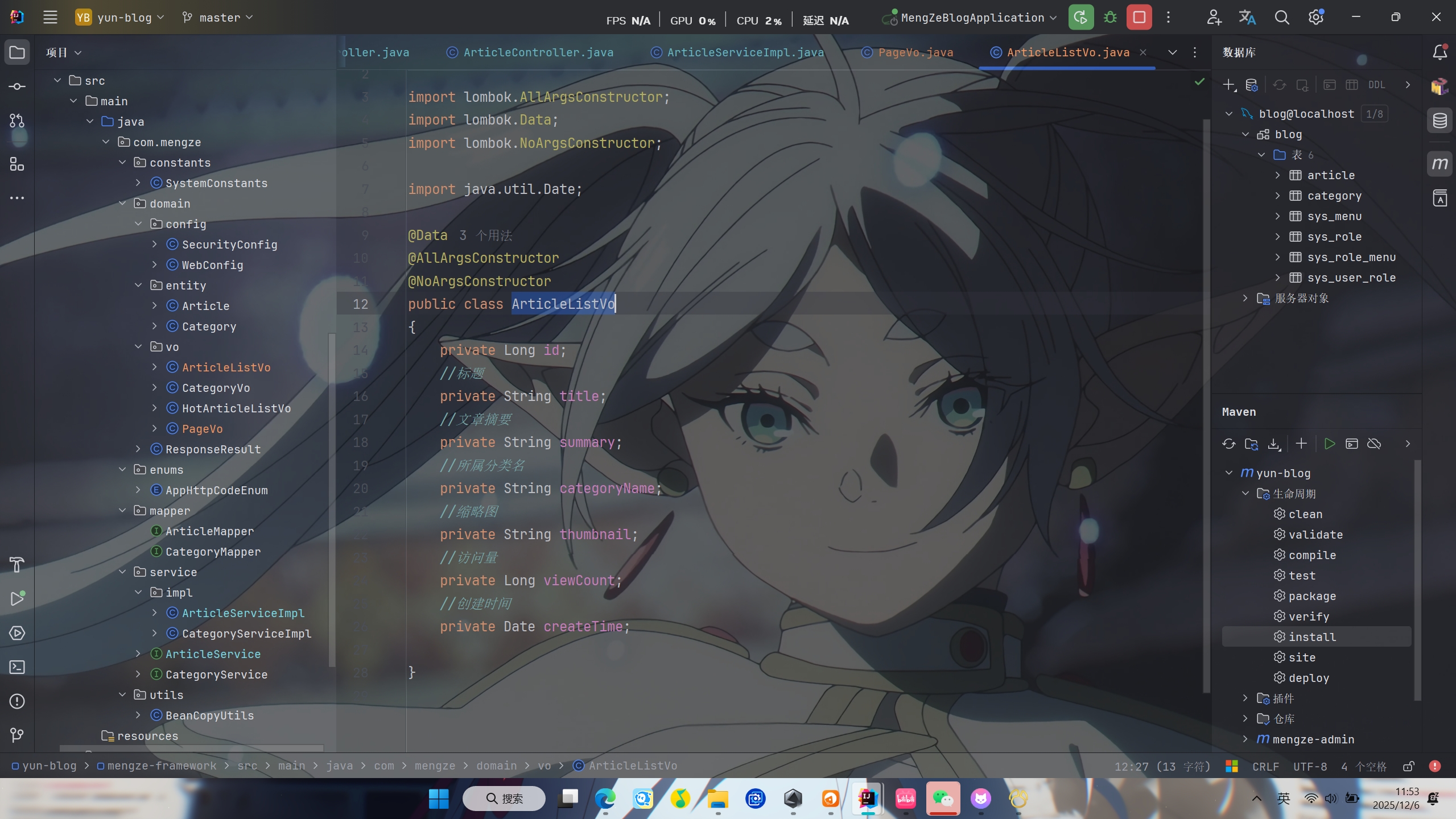 封装ArticleListVo,与PageVo