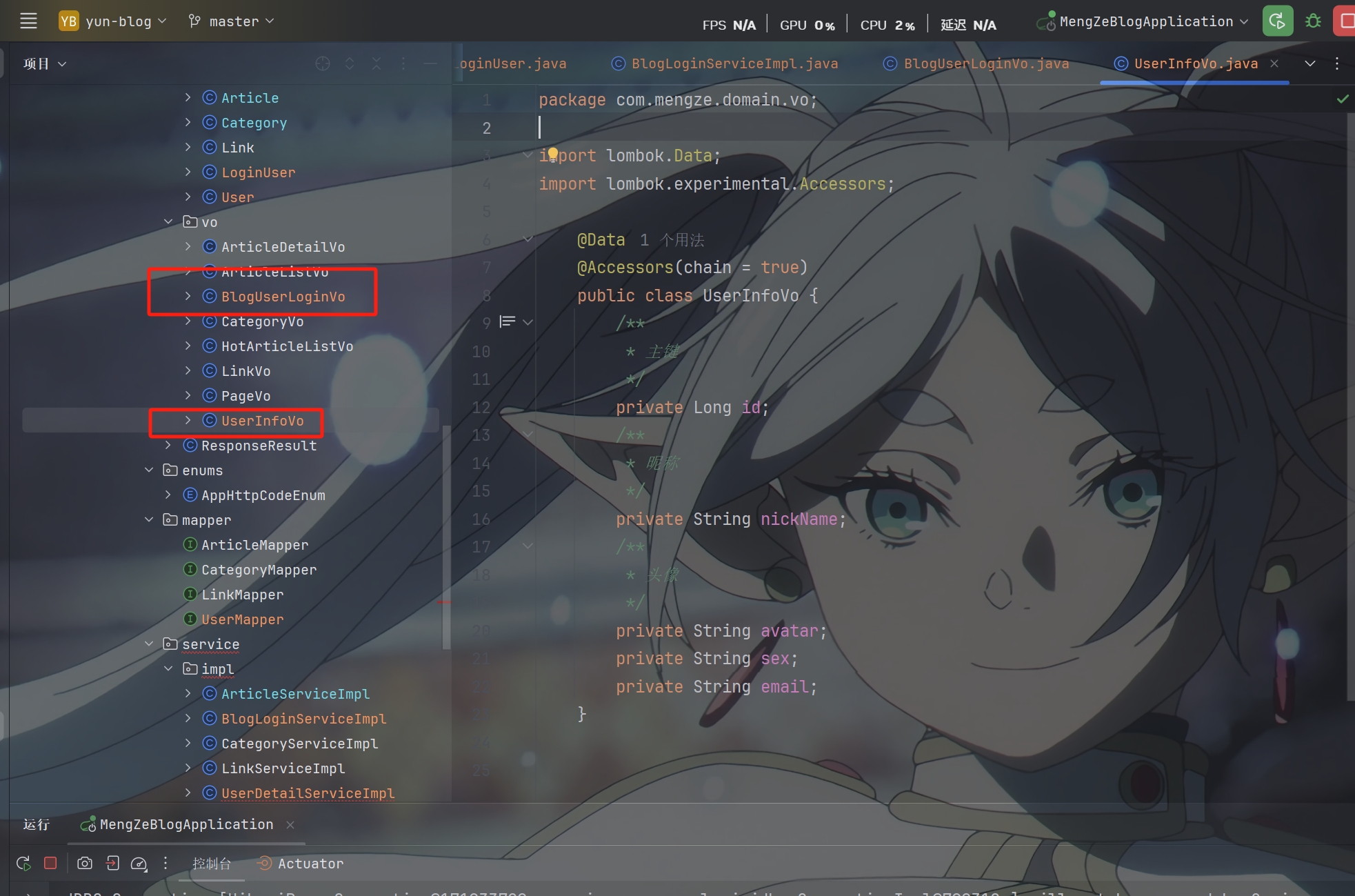 分别创建BlogUserLoginVo和UserInfoVo对数据进行封装