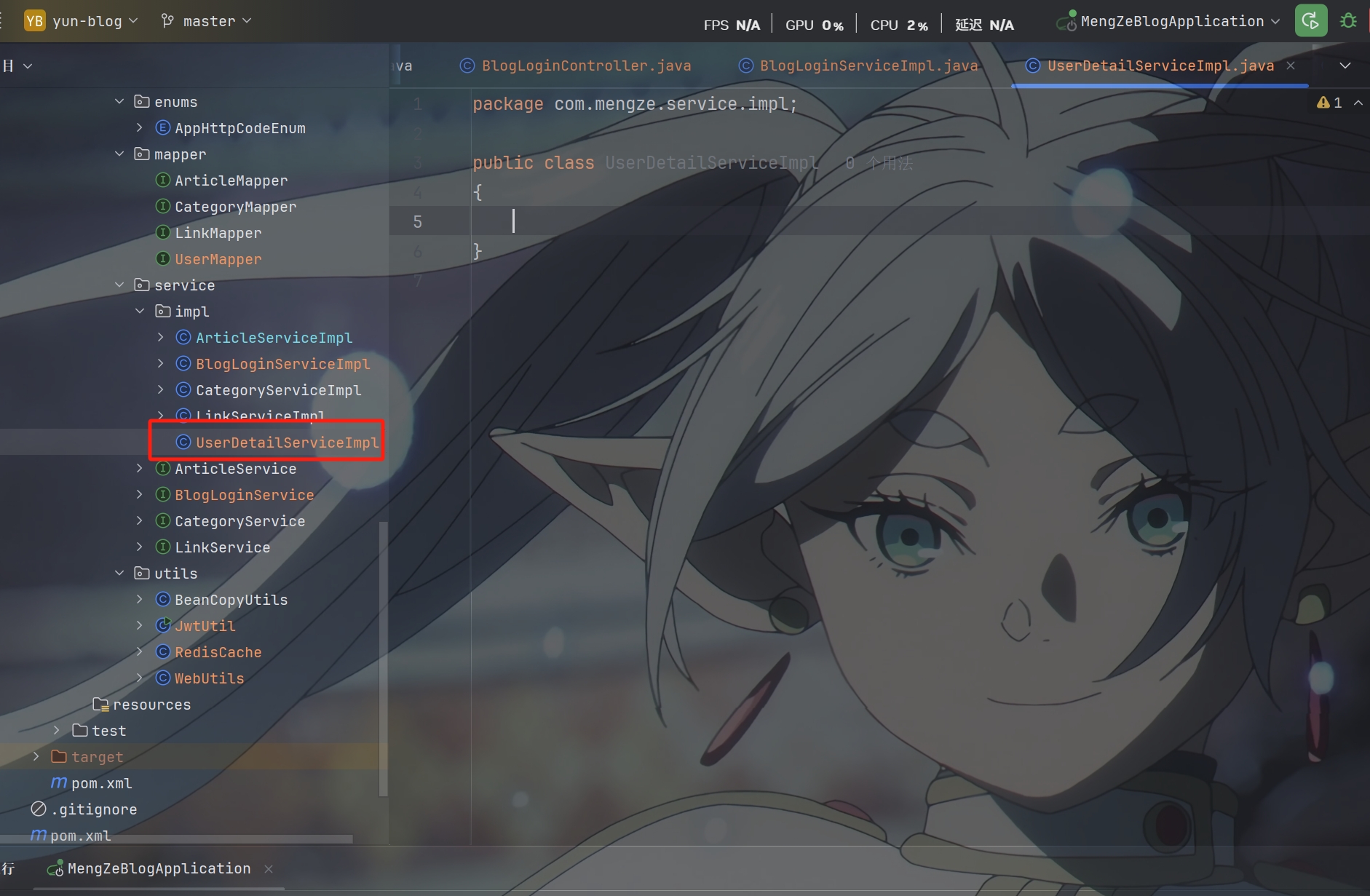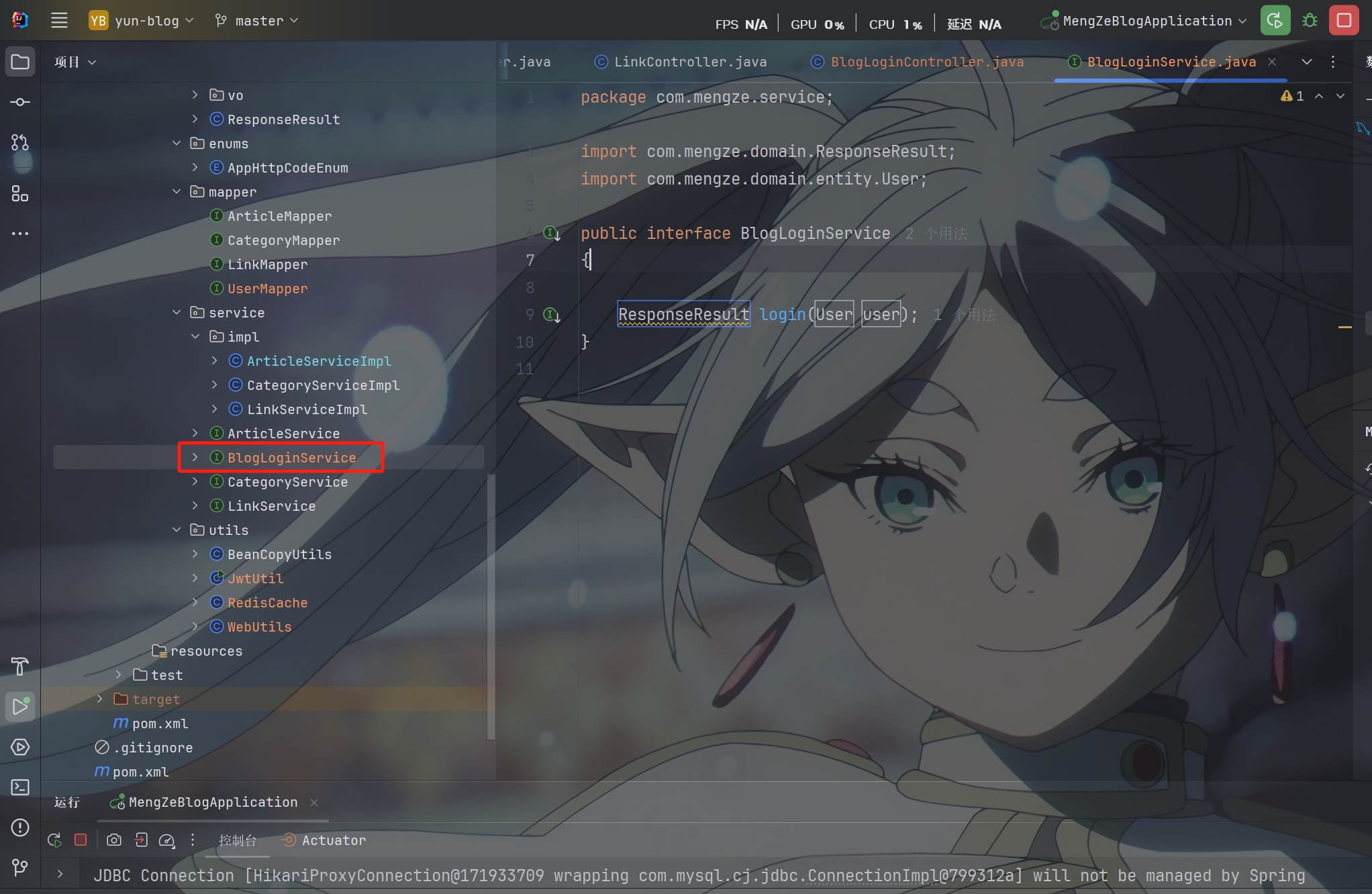 然后创建BlogLoginService接口并在其中创建需要的方法