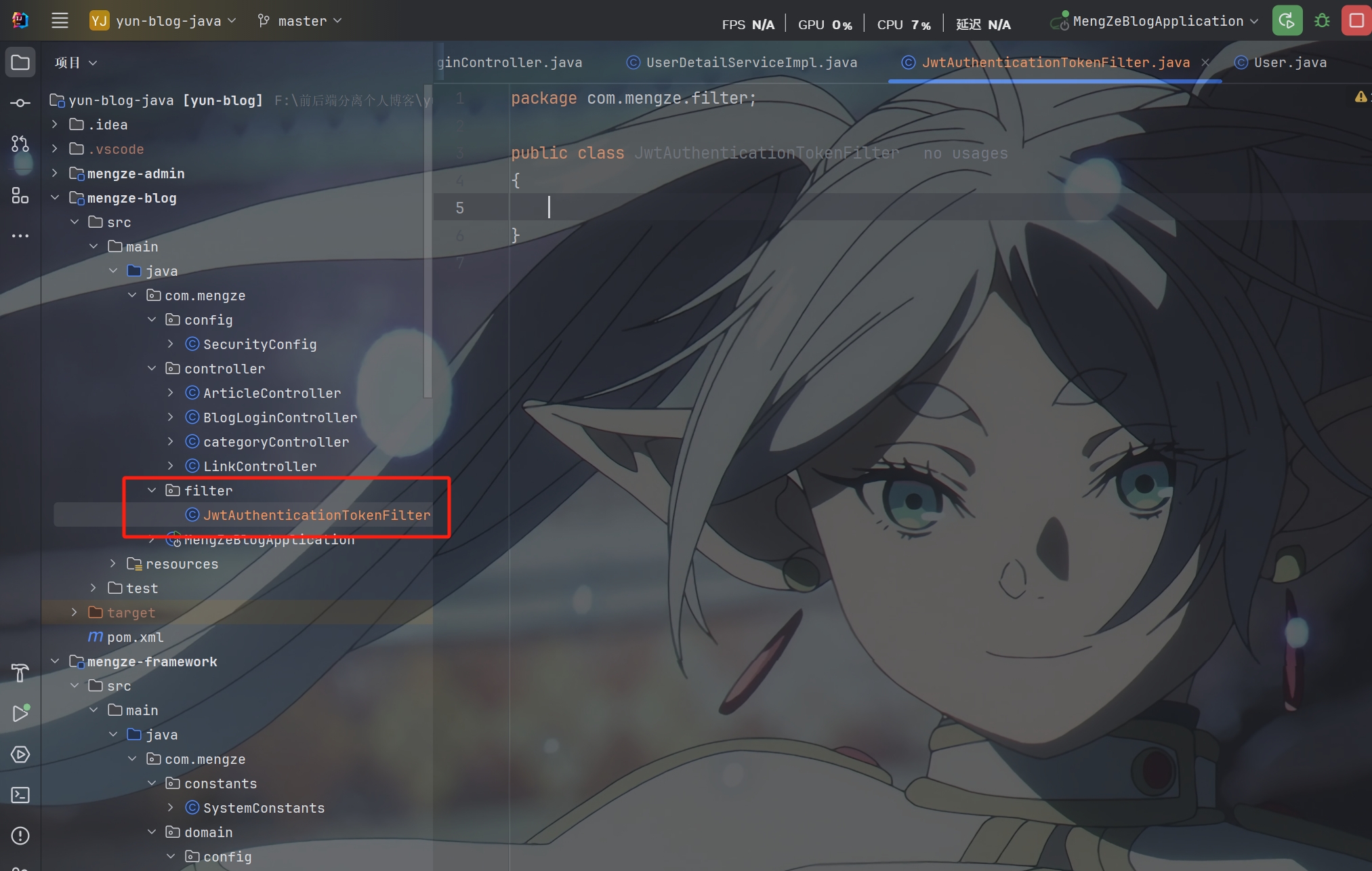 @Override protected void doFilterInternal(HttpServletRequest httpServletRequest, HttpServletResponse httpServletResponse, FilterChain filterChain) throws ServletException, IOException { String token = httpServletRequest.getHeader("token"); if (!StringUtils.hasText(token)){ filterChain.doFilter(httpServletRequest, httpServletResponse); return; } Claims claims = null; try { claims = JwtUtil.parseJWT(token); } catch (Exception e) { e.printStackTrace(); ResponseResult responseResult = ResponseResult.errorResult(AppHttpCodeEnum.NEED_LOGIN); WebUtils.renderString(httpServletResponse, JSON.toJSONString(responseResult)); return; } String userId = claims.getSubject(); LoginUser loginUser = redisCache.getCacheObject("bloglogin:" + userId); if (Objects.isNull(loginUser)){ ResponseResult responseResult = ResponseResult.errorResult(AppHttpCodeEnum.NEED_LOGIN); WebUtils.renderString(httpServletResponse, JSON.toJSONString(responseResult)); return; }