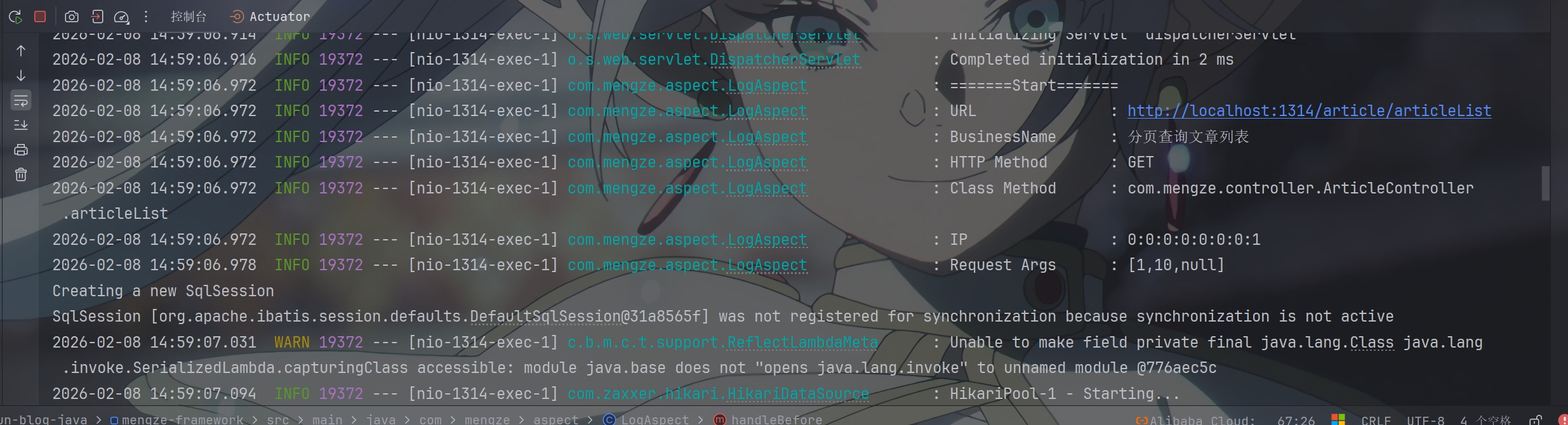 运行后控制台输出日志