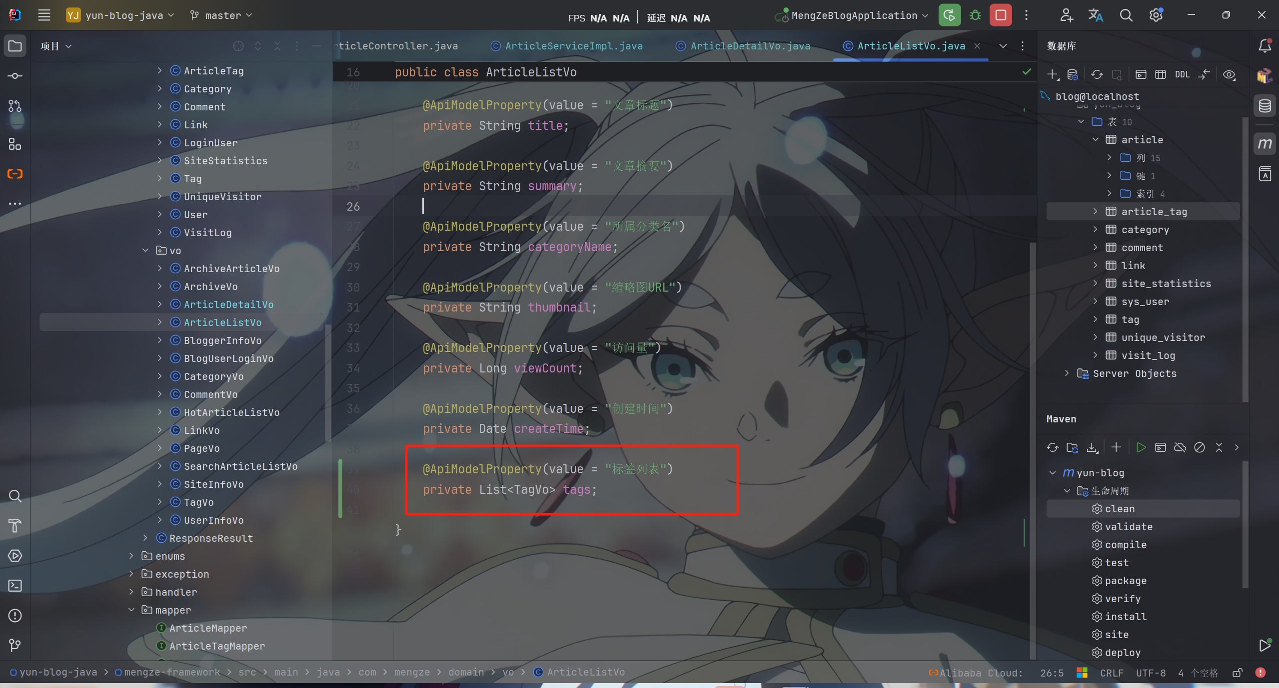 分别在文章列表和文章详情的Vo类中加上标签列表字段